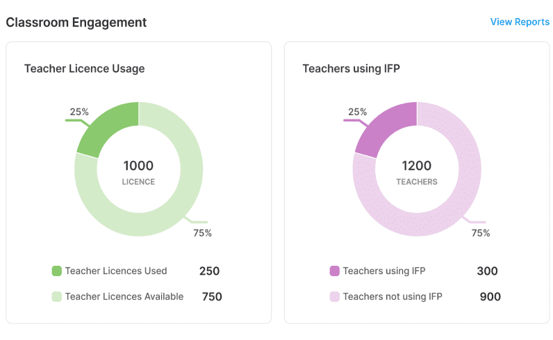 Teacher activity monitoring across subjects & classrooms.