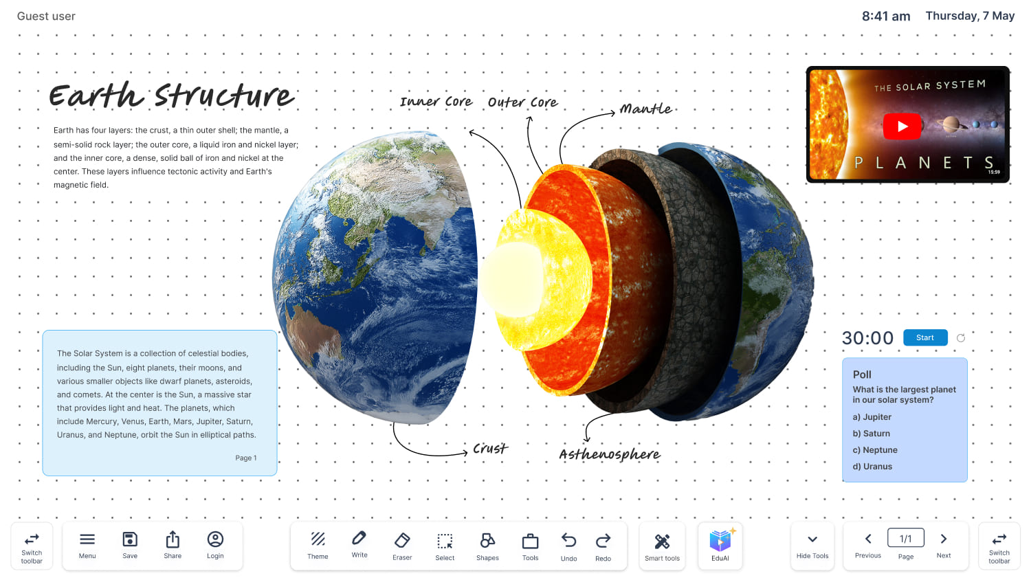 Elevate your teaching with our interactive whiteboard, featuring AI-powered tools for a smarter, more engaging and collaborative learning experience.