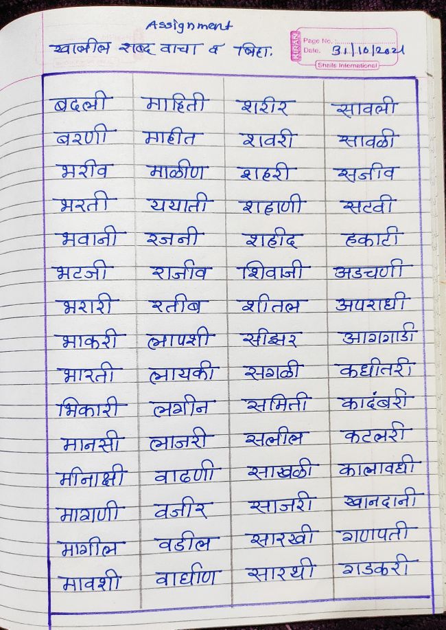 विषय - मराठी - शब्द लेखन