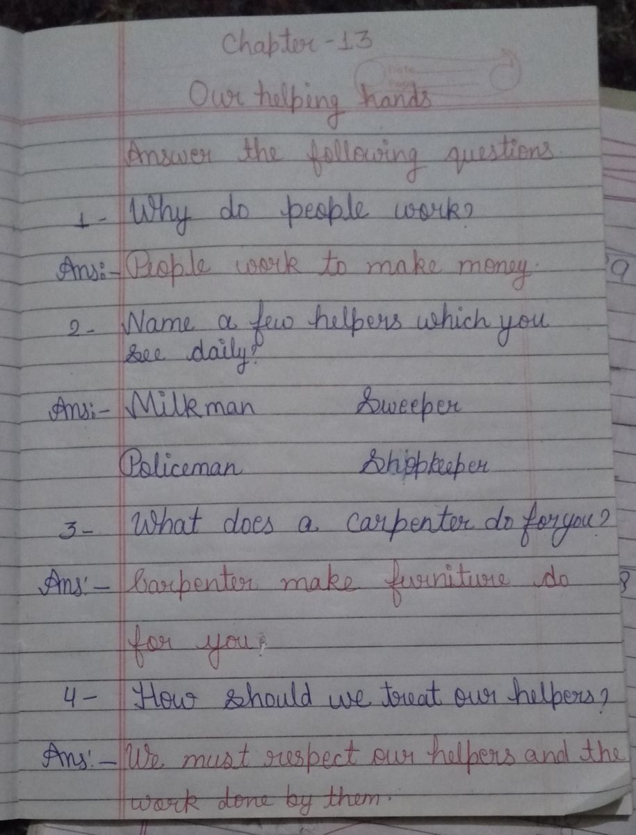 Write and learn questions in your E. V.S notebook