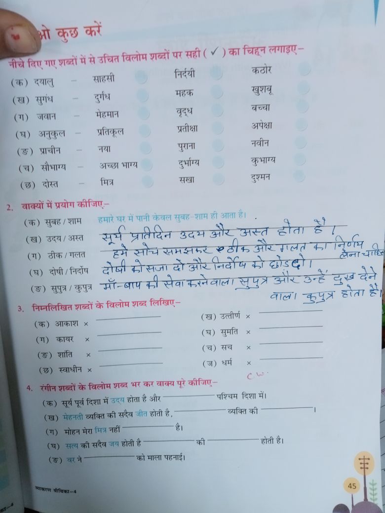 हिंदी व्याकरण -पेज 45पर दिए प्रश्न दो और तीन कॉपी में करिए |