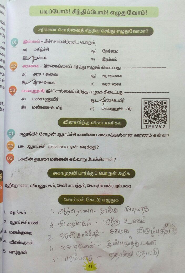 I.சரியான சொல்லை தெரிவு செய்க II.பொருள் எழுதுக