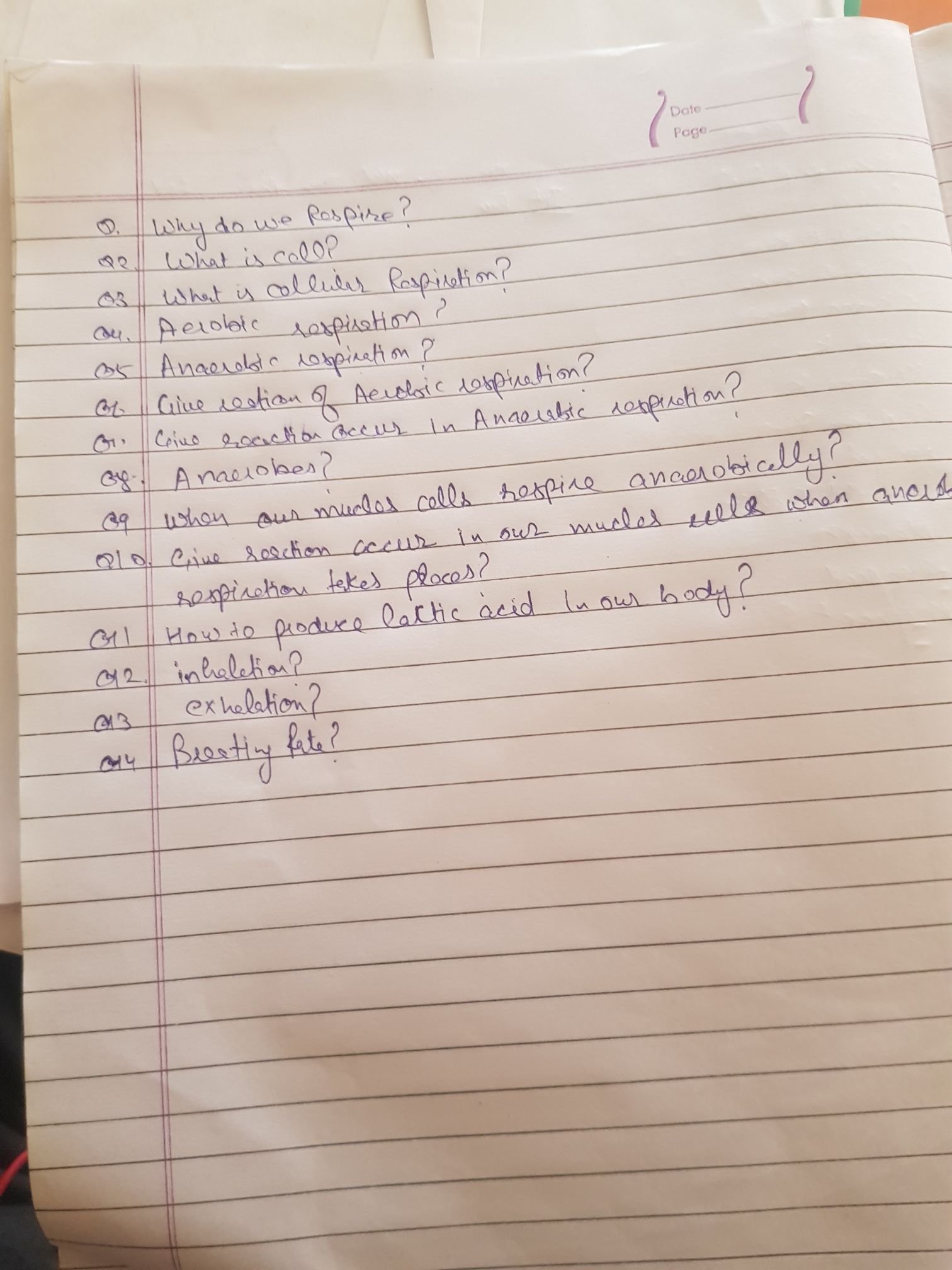 Extra Questions Of Chapter Respiration In Organisms