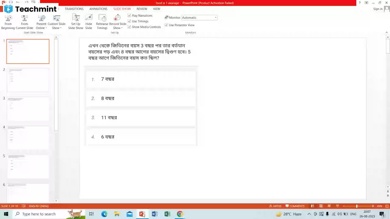 1. If the sales value of book P from Kolkata is %690 lakh,, then what is the average sales value of all the given, books from Kolkata?, , 1)%616 lakh 2)%676 lakh 3)2716 lakh, 4)%706 lakh 5) None of these, 2. Ifthe sales value of book Q is &765 lakh in Mumbai, then, , what is the ratio of the sales value of book R and T from, Kolkata to the sales value of book Q from Mumbai,, Chennai and Patna together?, 1)331;329 2)329:457 3)345:359, 4) 345: 356 5) None of these, , 3. Ifthe total sales value of book R from all the cities together, is 24650 lakh, then what is the difference between the, sales value of book R from Patna and the sales value of, book T from Chennai?, 1)%270 lakh = 2)%365Slakh =. 3) &245 lakh, 4)210 lakh 5)%470 lakh, , 4 Ifthe sales valuc of all the books from Chennai is 23630, lakh then the sales value of book $ from Chennai is what, per cent of sales value of book T from Pune?, 1)68.47% 2)89.47% 3) 78.47%, 4)83.74% 5)85.27%, , 5 Ifthe sales value of T from Delhi is 650 lakh, then what, is the difference between the sales value of all the books, from Delhi and the sales value of book T from all the, cities together?, , 1)%560 lakh 2)%620 lakh 3) %640 lakh, , 4)%660 lakh $)%680 lakh, , Directions (6-1 0) In these questions two equations, numbered I and II are given. You have to solve both the, equations and mark the appropriate option. Give answer, , Iifx>y 2)ifx<y, , 3)ifx2y 4)ifxsy, , 5) if x = y or relationship between x and y can't be, established., , 61. 8x*-23x+ 15=0, IL 3y'+ lly +8=0, 7 1.28-19x+42=0, Il. 20y?~ 89y + 99 =9, i, , 8. 1. (144)? x 4.7396 = 194, , 1, IL (729)? y~455 = 16900, 9. 1.2x°-23x+56=0, IL 4y?~19y+12=0, 10.1.5x+9y=109, IL. 3x+4y=62