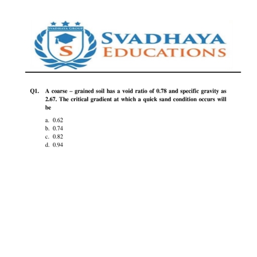 To reduce the wearing of rails, the, rails are placed at an, , a. inward slope of 1 in 20, , h. outward slope of 1 in 20, , c, inward slope of | in 30, , d. outward slope of 1 in 30, , The impact of the rail wheel ahead of, the joint gives rise to the creep of the, rail. This statement is according ta, a. wave theory, , b. percussion theory, , c, drag theary, , d. none of these, , The adjustment of rails is usually, needed when creep exceeds, , a. 50 mm, , b. 100 mm, , c. 150mm, , d_ none of these, , Which of the following sleeper, provide best elasticity of track?, , a. Wooden sleeper, , b. Cast iron sleeper, , c. Steel sleeper, , d. R.C.C, sleeper, , The number of sleeper used for rail, varies from, , a. (n+ 1) to(n=4), , bh. (n+ 3) to (n + 6), , c.(n 1 2)to(n | 7), , d. (n+ 4) to(n +8), , The composite sleeper index is the, index of, , a. Strength and hardness, , b. Strength and toughness, , ¢. Hardness and wear resistance, , d, Toughness and wear resistance, , The maximum depth of ballast for, broad gauge tracks on Indian, railways is, , a. 200 m, , b. 250m, , c. 300m, , d. 350m, , Speed of the Train on Non Transition, curveistaken_—s—_—stto. that of, speed on Transition cure., , a, 55%, , b. 70%, , ¢. 75%, , d, 80%, , To hold the adjoining ends of rails in, correct horizontal and vertical planes,, the rail fastenings used are, , a. Fish plates, , b. Spikes, , ¢. Anchors, , d. Bearing plates, , No signals are provided in case of, , a, Ruling gradient, , b. Momentum gradient, , ¢, Pusher gradient, , d. Station yards gradient, , According to railway code formula,, the length of transition curve is equal, to, , a. L4vR, , b. 24VR, , ¢. 3.4V¥R