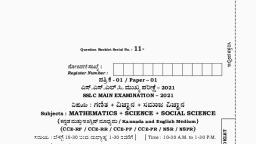7, , CCE RF & RR, XII., , 31-E, , Answer the following question in about 8 - 10 sentences :, 36., , 1×4=4, , Sum up the conversation between the poet and the Mother India in your, own words., OR, Write the summary of the poem ‘I am the Land’., OR, Both the narrator and his father were very considerate towards grandma., Justify., 1×4=4, , XIII. Write an essay on any one of the following :, 37., , a), , Cleanliness and hygiene, , b), , Save forests, save life, , c), , Water pollution., 1×5=5, , XIV. Write a letter using the information given below :, 38., , Imagine you are Kiran / Keerthana studying in Government High School,, Koppala., Write a letter to your friend describing ‘Republic Day’ celebrations in your, school., OR, Write, , a, , letter, , to, , the, , Commissioner,, , City, , Municipal, , Corporation,, , complaining about drainage problems in your locality., , RF & RR(A)-312, , [ Turn over