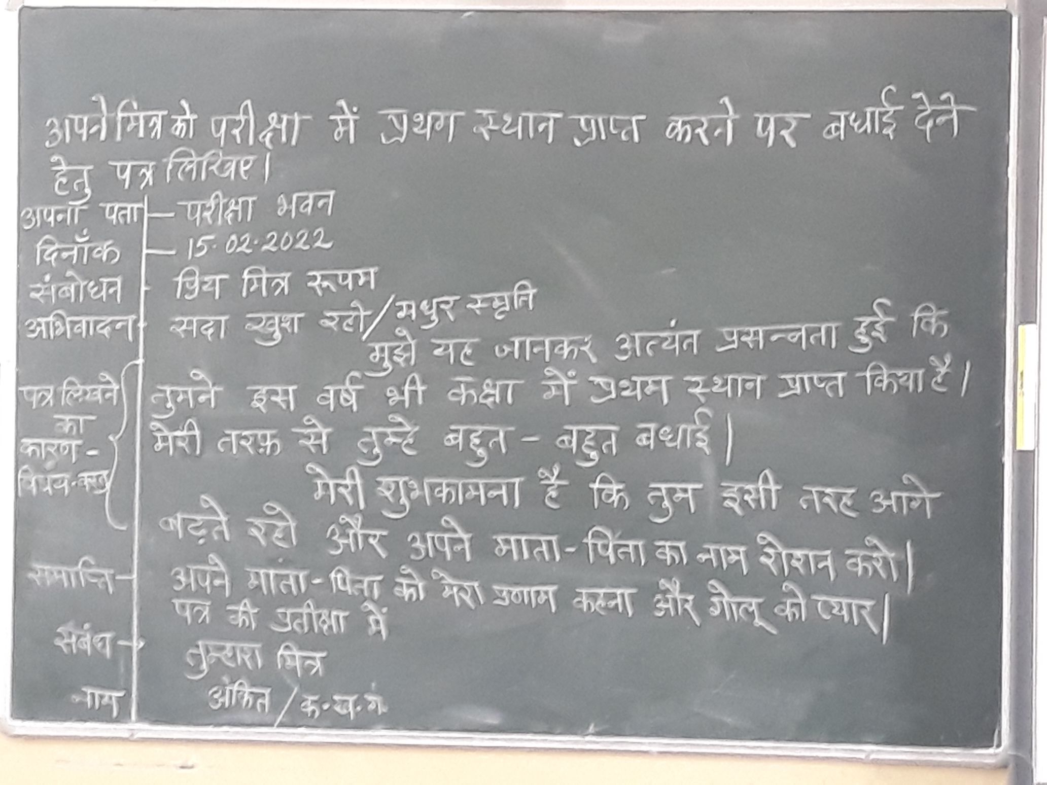 मित्र को बधाई हेतु पत्र