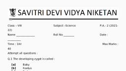 Class – VII, , Subject –Science, , P.A.- 2 (2021-22), , Time : 1Hr, , Max Marks : 40, , Attempt all questions :, Q.1 Which of the following statement is correct in reference to the role of A (shown in the, diagram) during a reproduction in plants?, , [a] It contain pollen grain, [b] Landing platform of pollen grain, , [c] It contain female gamete, [d] It helps in seed dispersal, , Q.2 The process in which off spring are exact copies of their either parents., [a] Sexual reproduction, [b] Gamete formation, , [c] Asexual reproduction, [d] Zygote, , Q.3 In which of the following plants, new plants grow from leaf of the parent plant., [a] Money plant, [b] Bryophyllum, , [c] Potato, [d] Spores, , Q.4 What do we call magnetic material around which the coil is wound ?, [a] Core, [b] Solenoid, , [c] Electromagnetic, [d] Metal, , Q.5 A bulb has a thin wire made up of?, [a] Nichrome, [b] Tungsten, , [c] Filament, [d] Copper, , Q.6 In the diagram given below , which statement is not true ?, 1. This is a Dandelion seed, 2. This is a maple seed, 3. It has wings attached to it