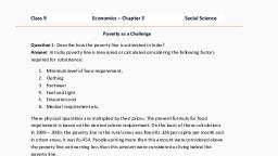 2. [HOTS! Do you think that present ethodolc, of poverty estimation is appropriate? vay, Ans. The Present methodology of poverty estimation i, appropriate because it takes into account only the —, € bas;, , needs of food, clothing, fuel, etc. The quality of these, , basic necessities is the lowest quality available, which ;, not appropriate. a, , The amount which is fixed as the poverty line does no, include the margin for price fluctuations and, which is constantly occurring., , The poverty line should include some correction for, inflation and to take care of the market fluctuations., , Price rise 4, , 3. Describe the poverty trends in India since 1973. |, , Beri a, , Ans. The trends in poverty since 1973 are, (2) There is substantial decline in poverty ratio from, , 55% in 1973 to 44.3% in 1993 and 21.9% in, 2011-12., , (72) Rural poverty has declined sharply from 56% in 1973 °, to 25.7% in 2011-12 and the numbers from a, , 261 million to 216.5 million, 4, , (111) The latest estimates indicate a significant reduction in, the total urban and rural number of poor to be abou, 269.3 million, down from 321 million in 1973., , FF | A Te Le eK ASSAY PAA OANNA FAT WATTOPY in India