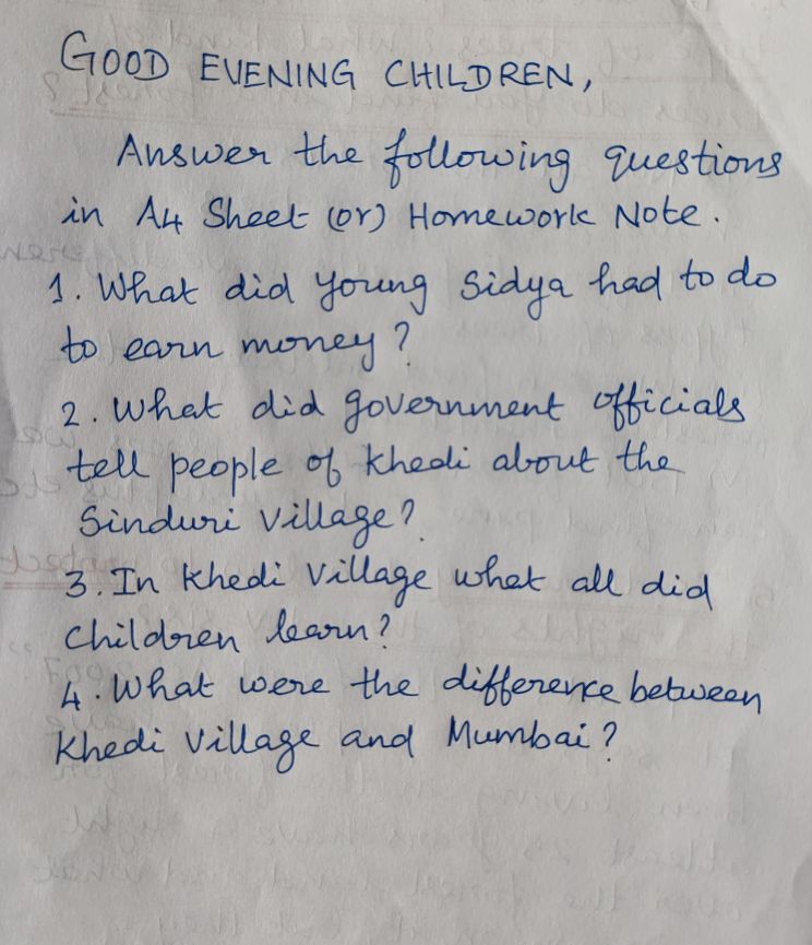 Good evening Children, Answer the following questions in A4 sheet or homework note.