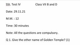 LITTLE FLOWER SCHOOL, SHRAVASTI, Class Assessment Test January-22, Social Science, Class: V, Time:20 min, I. Write the one-word answer in each question, 1. In earlier times, people used to send messages through., , F.M: 50, P.M: 20, 1 X 30=30, , Ans:, 2. Alexander Graham Bell invented the:, Ans:, 3. Full form of PIN is:, Ans:, 4. Advertisements give us information about:, Ans:, 5. Full form of STD is:, Ans:, 6. Who invented the radio in 1886 ?., Ans:, 7. Nowadays,paper is made from____________., Ans:, 8. The first book to be printed by the printing press was:, Ans:, 9. The concept of decimal was introduced by the:, Ans:, 10. The Brahmi script or the Indian script was developed nearly ____ years ago., Ans:, 11. The word “Paper” is derived from _____ which was used by the ancient, Egyptians., Ans:, 12. The concept of zero originated in :, Ans:, 13. Penicillin was discovered by ________., Ans: